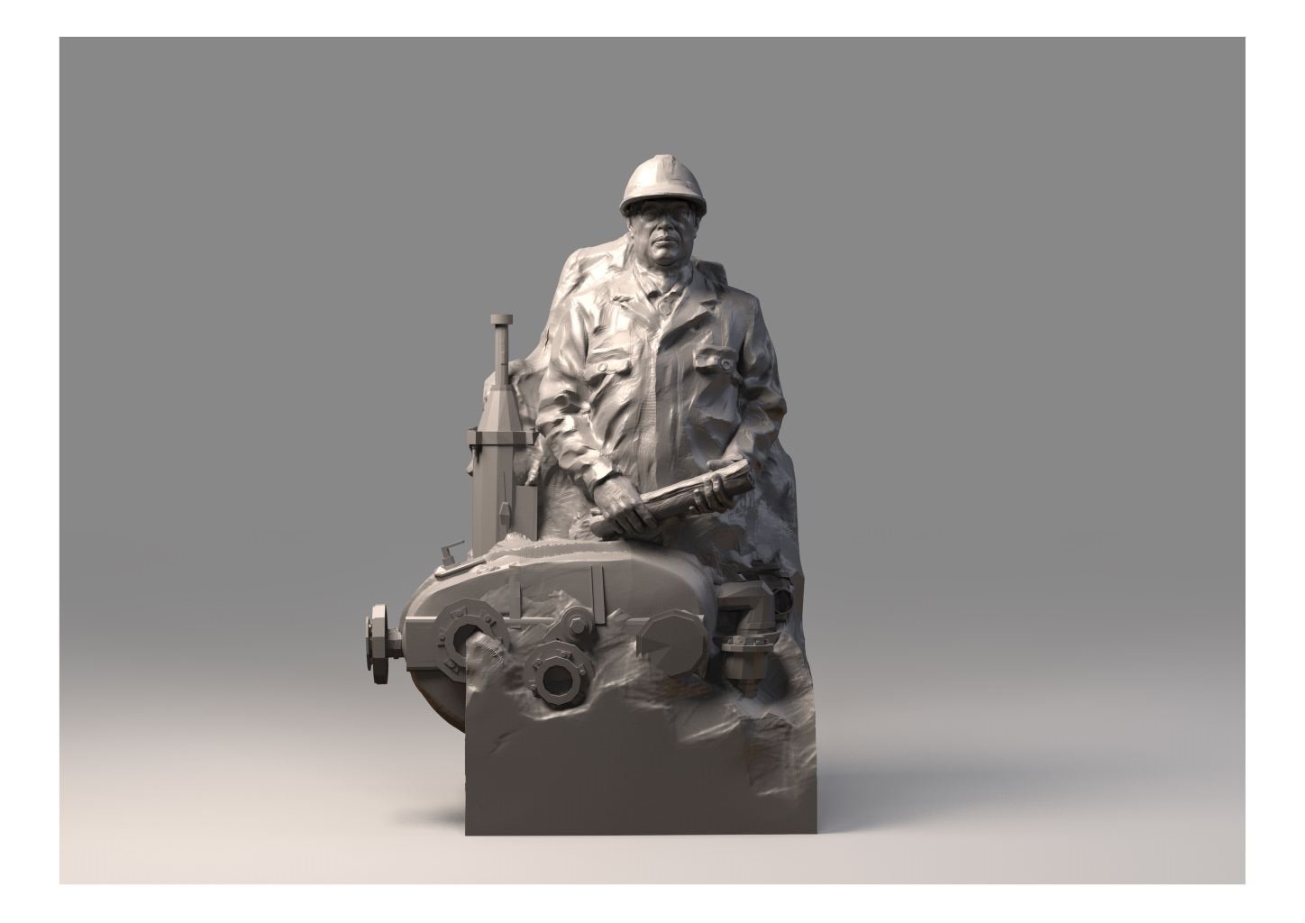 作品《筑梦者》以冷峻的工业灰为基调,凝固了工程师与机械对话的瞬间。展现了我们的工程师以智慧为基,在沉默的图纸与轰鸣的车间里,浇筑着一个时代的灵魂。这是新时代“德艺双馨”的立体肖像:以技载德,以德育人。也隐喻讲台上的教师像车间里的筑梦人,让我们在这尊凝固的火焰里,读懂“铸魂育人”的千钧重量——它落在工程师的肩头,也落在每一位师者的心头。