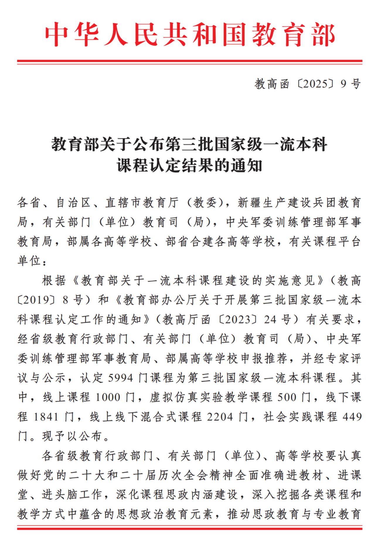近日,教育部发布《关于公布第三批国家级一流本科课程认定结果的通知》(教高函〔2025〕9号),我校《二王一系行书》成功入选第三批国家级线下一流课程,成为学校在课程建设领域取得的又一重要突破,为学校深化教育教学改革、打造优质课程体系注入强劲动力。